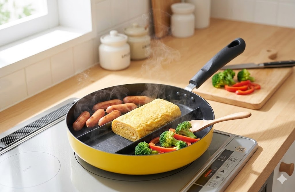 仕切りフライパンで朝食・お弁当を時短!アーネスト「センターエッグトリプルパン」正直レビュー